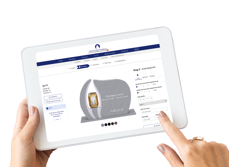 Vi kommer kort att förklara de tillgängliga funktionerna så att du kan justera gravstenens design efter dina behov.